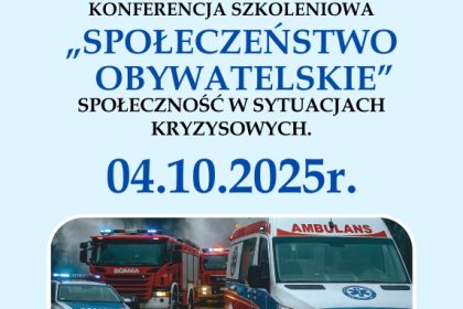 Zaproszenie na konferencję szkoleniową „Społeczeństwo obywatelskie. Społeczność w sytuacjach kryzysowych”.